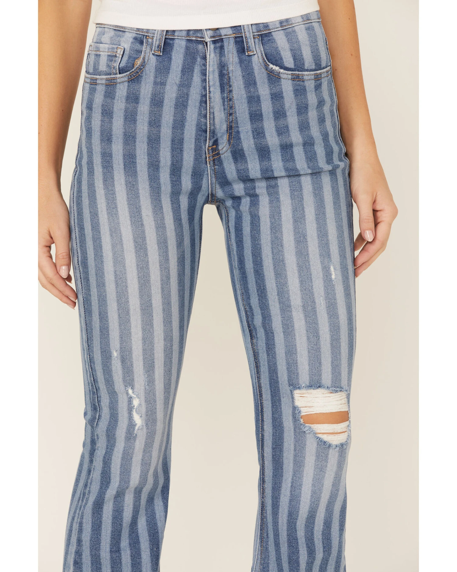 Cello Women’s Stripe Destruction Flare Jeans