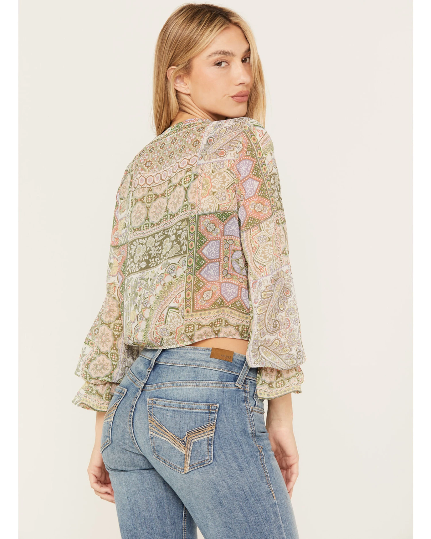 - Sage with allover patchwork print