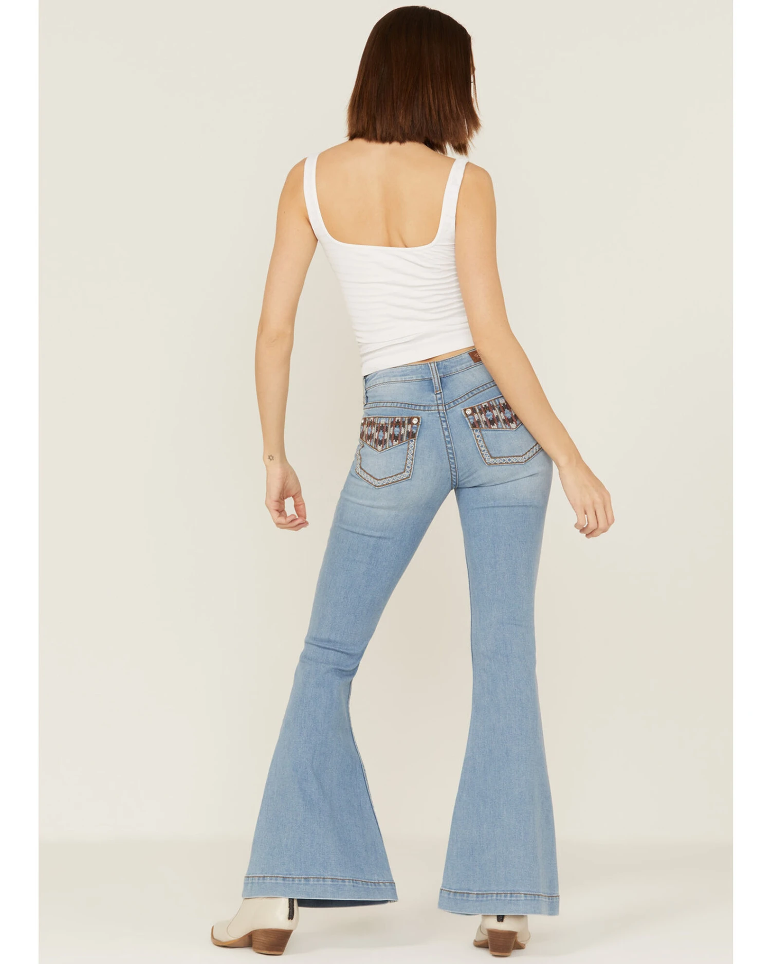Shyanne Women’s Mid Rise Southwestern Pocket Flare Jeans