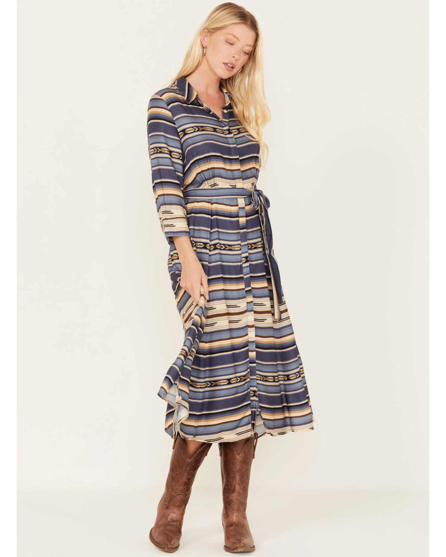 Stetson Women’s Serape Stripe Print Long Sleeve Midi Dress